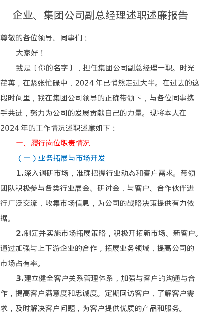 企业、集团公司副总经理述职述廉报告