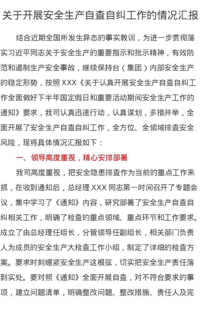 关于开展安全生产自查自纠工作的情况汇报