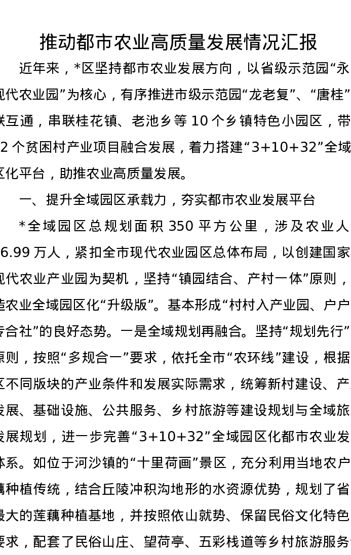 推动都市农业高质量发展情况汇报