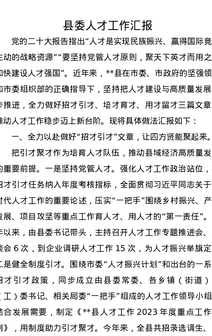 县委人才工作汇报