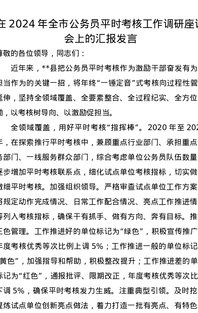 在2024年全市公务员平时考核工作调研座谈会上的汇报发言