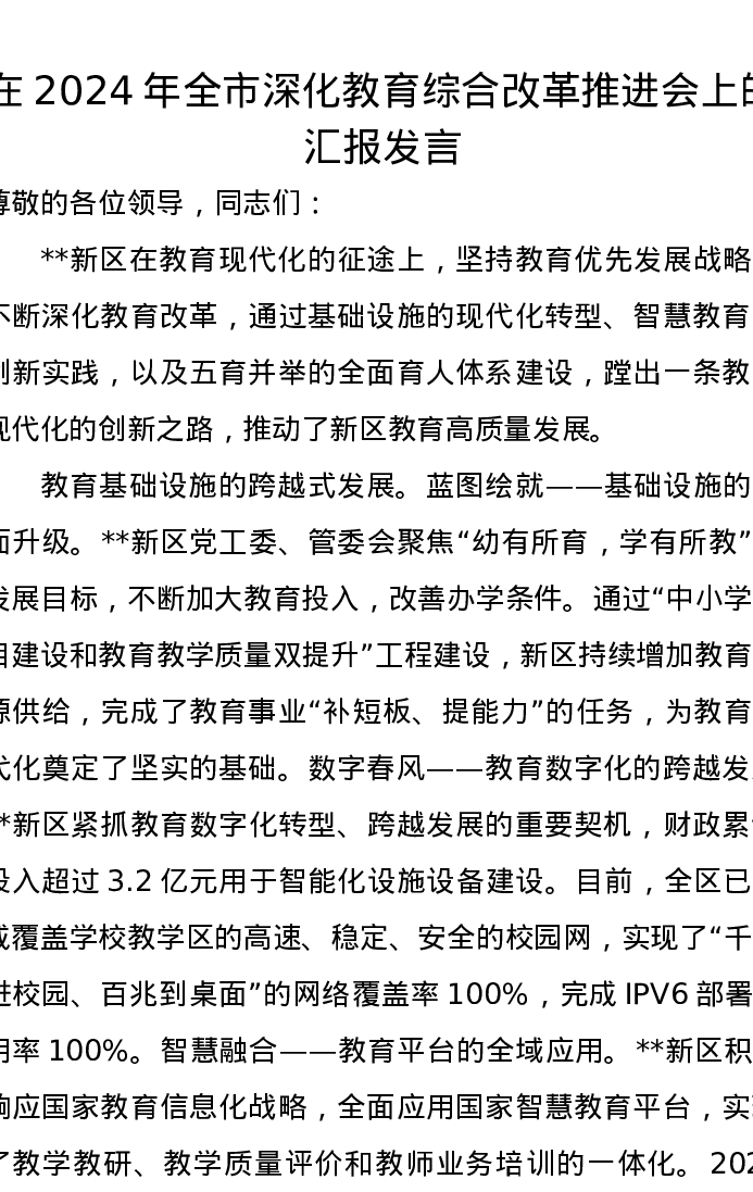 在2024年全市深化教育综合改革推进会上的汇报发言
