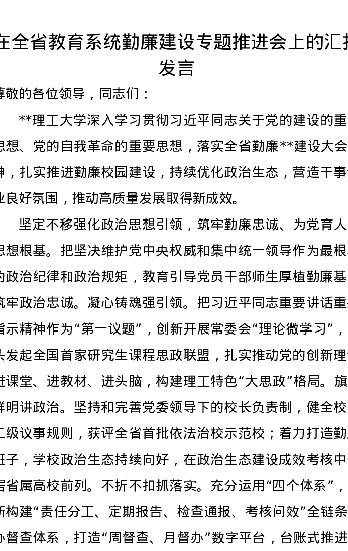 在全省教育系统勤廉建设专题推进会上的汇报发言