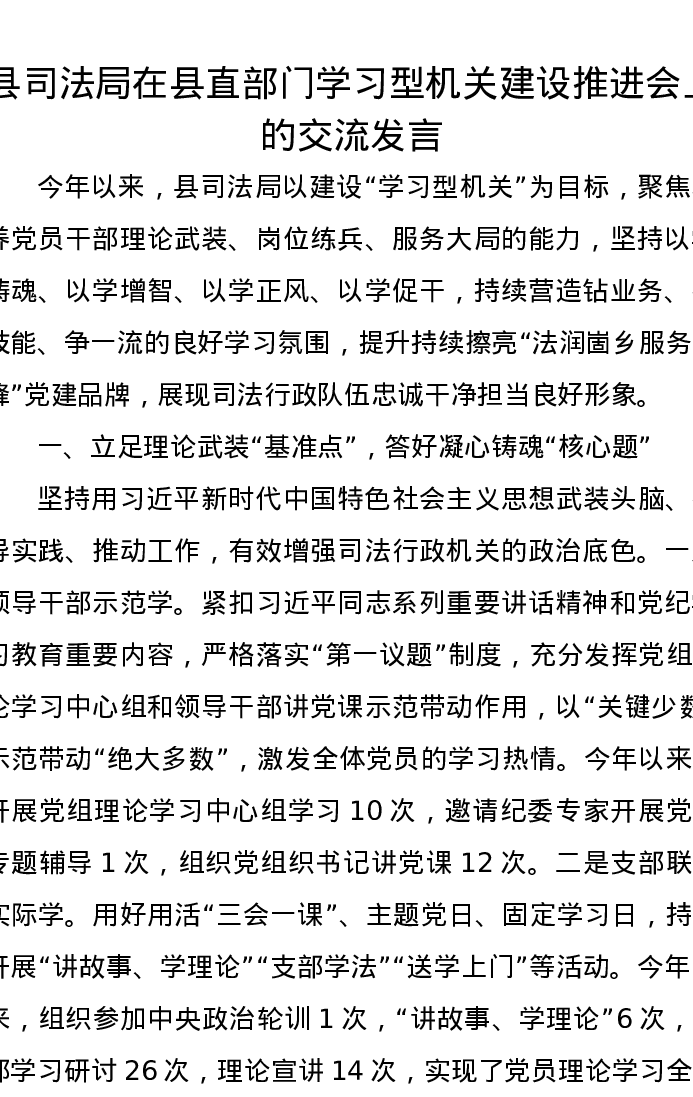 县司法局在县直部门学习型机关建设推进会上的交流发言