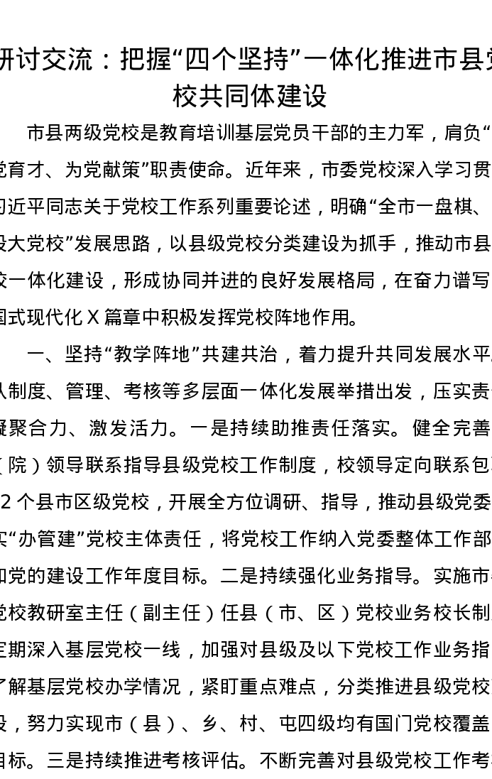 研讨交流:把握“四个坚持”一体化推进市县党校共同体建设