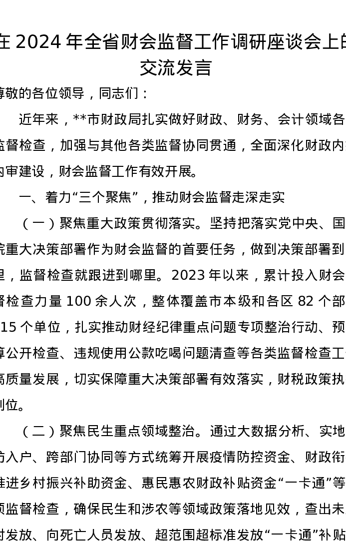 在2024年全省财会监督工作调研座谈会上的交流发言