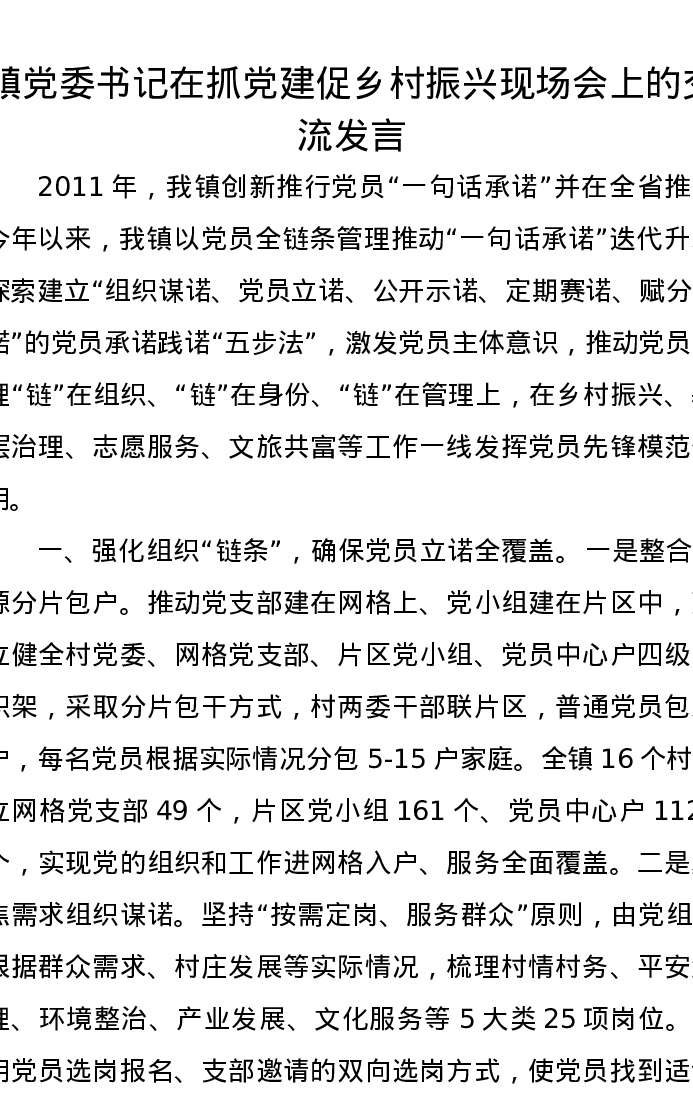 镇党委书记在抓党建促乡村振兴现场会上的交流发言