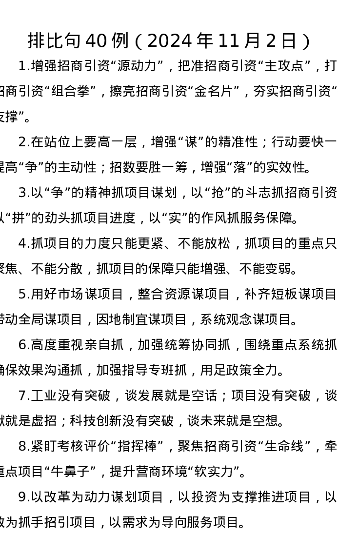 排比句40例(2024年11月2日)
