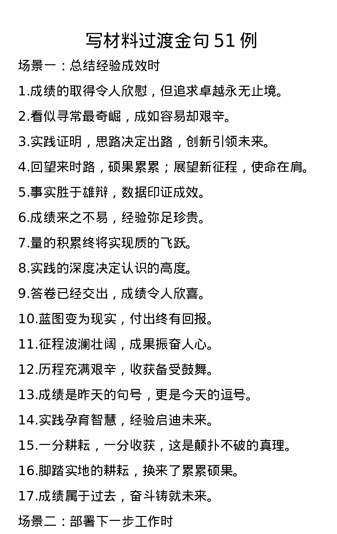 写材料过渡金句51例