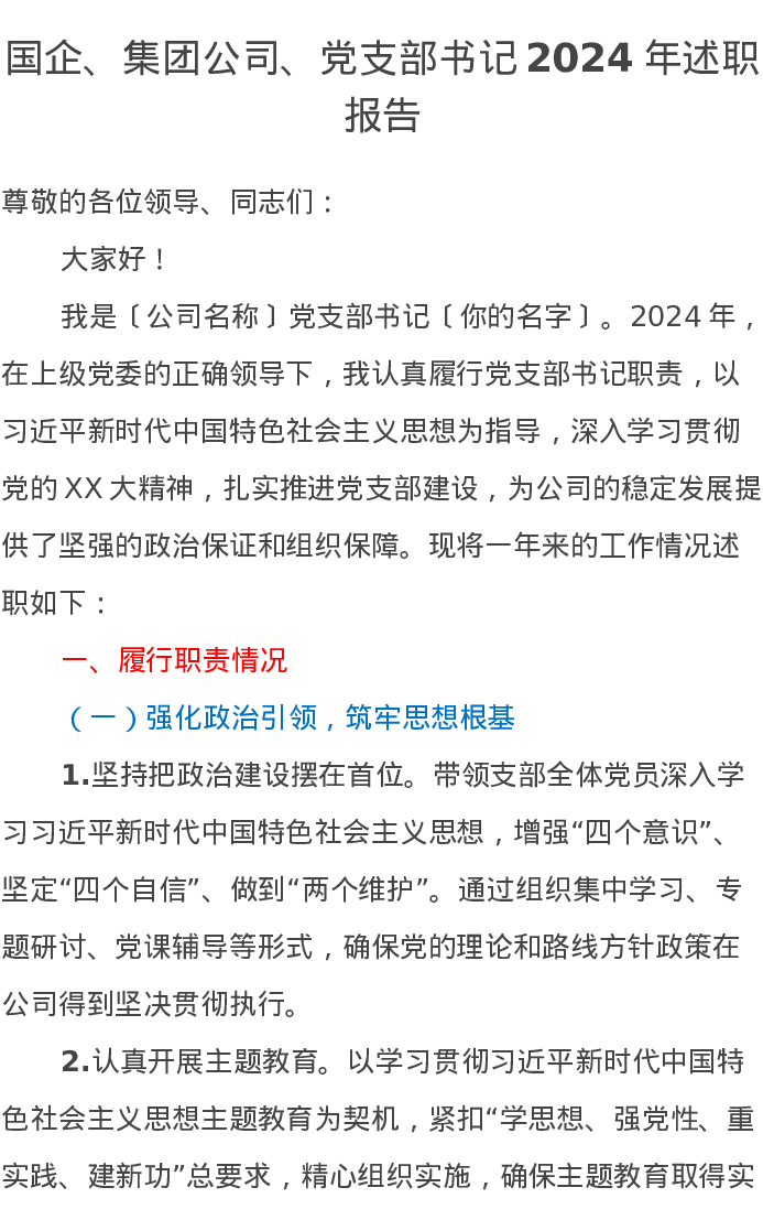国企、集团公司、党支部书记2024年述职报告