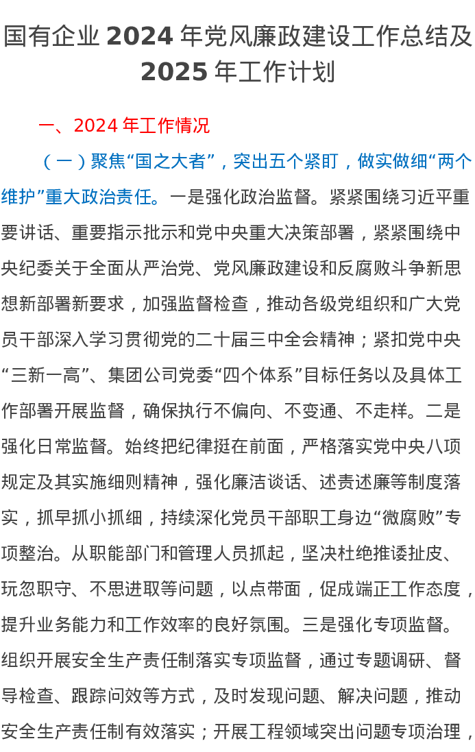 国有企业2024年党风廉政建设工作总结及2025年工作计划