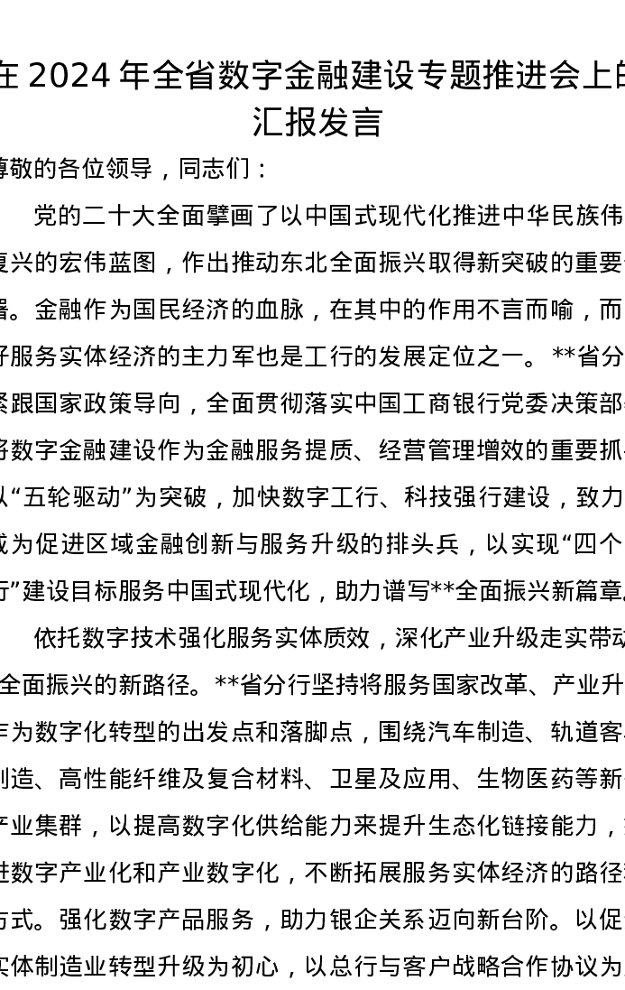 在2024年全省数字金融建设专题推进会上的汇报发言