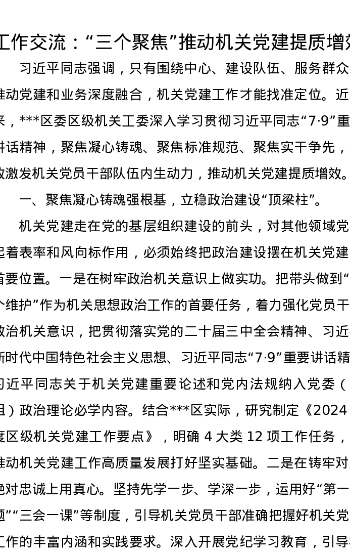工作交流:“三个聚焦”推动机关党建提质增效
