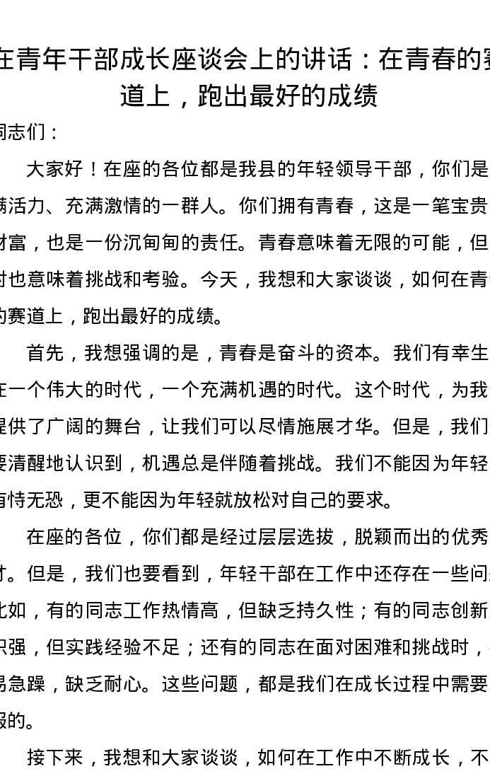在青年干部成长座谈会上的讲话:在青春的赛道上,跑出最好的成绩