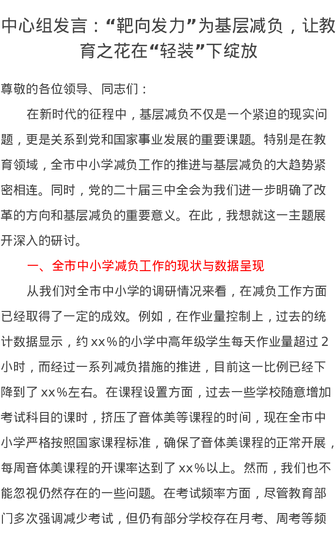 中心组发言:“靶向发力”为基层减负,让教育之花在“轻装”下绽放