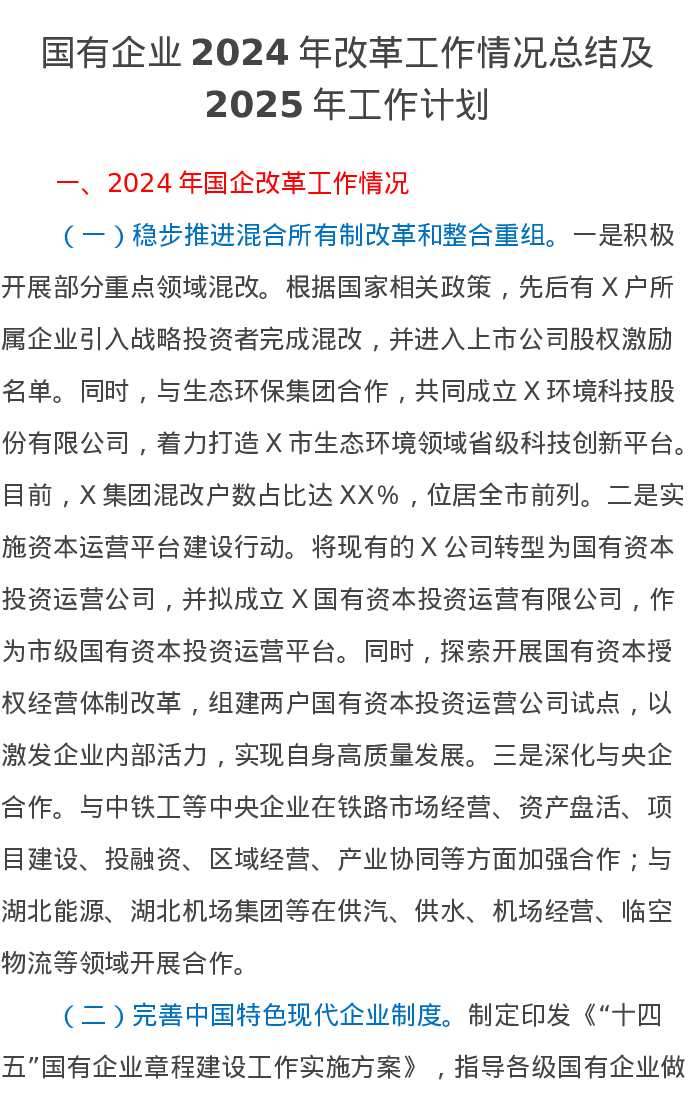 国有企业2024年改革工作情况总结及2025年工作计划