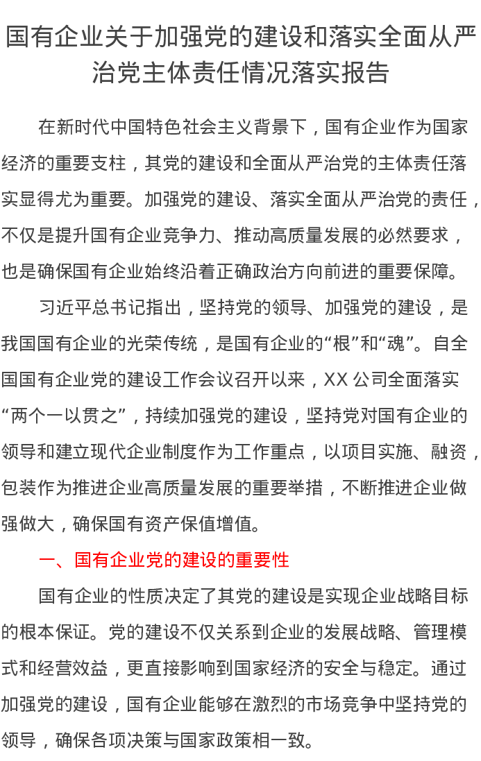 国有企业2024年关于加强党的建设和落实全面从严治党主体责任情况落实报告
