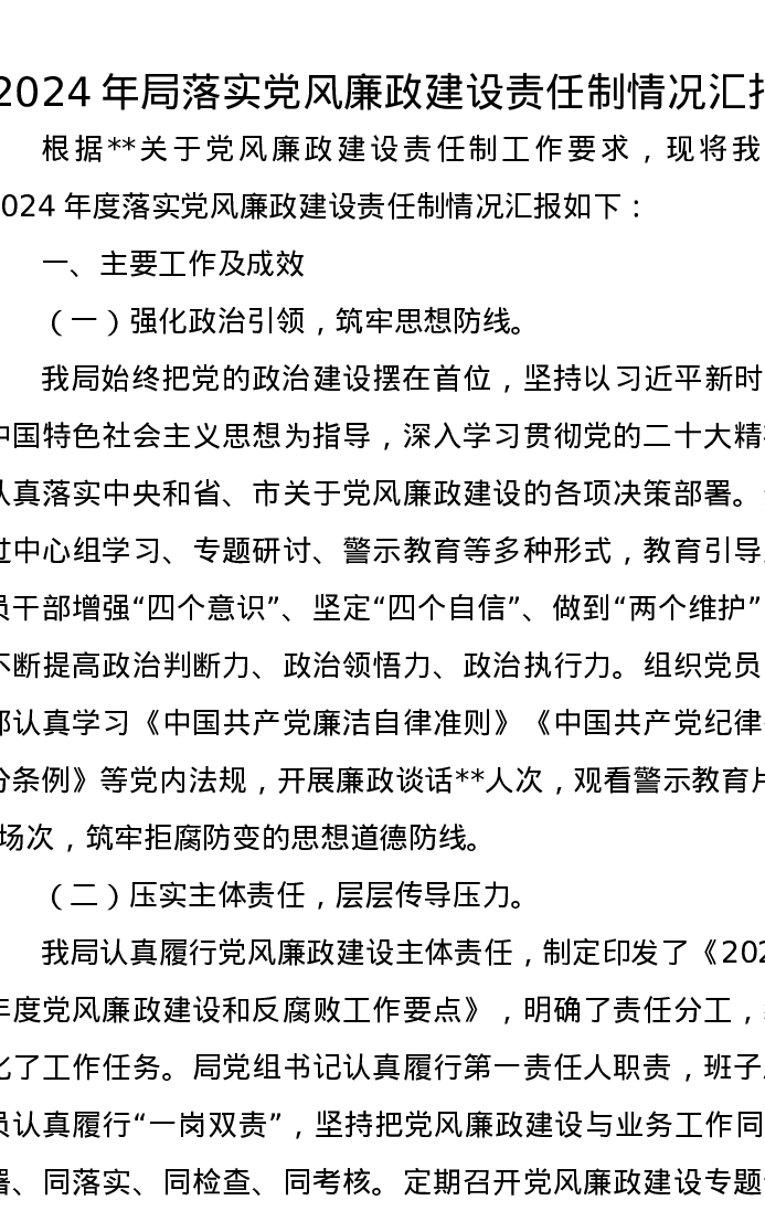 2024年局落实党风廉政建设责任制情况汇报