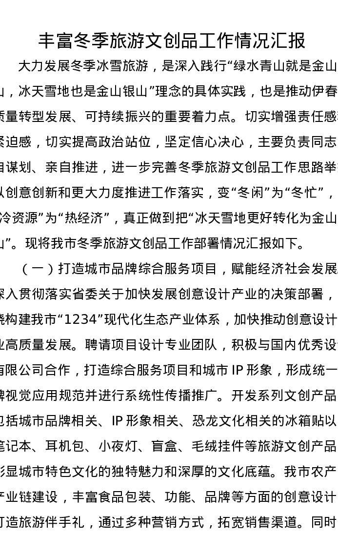丰富冬季旅游文创品工作情况汇报