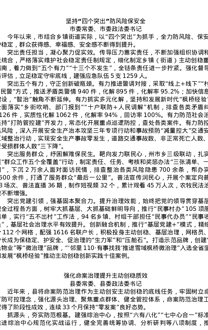 汇编:在全省县(市、区)党委政法委书记政法业务能力培训班上的交流发言6篇