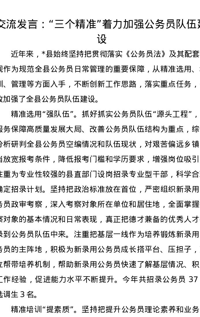 交流发言:“三个精准”着力加强公务员队伍建设