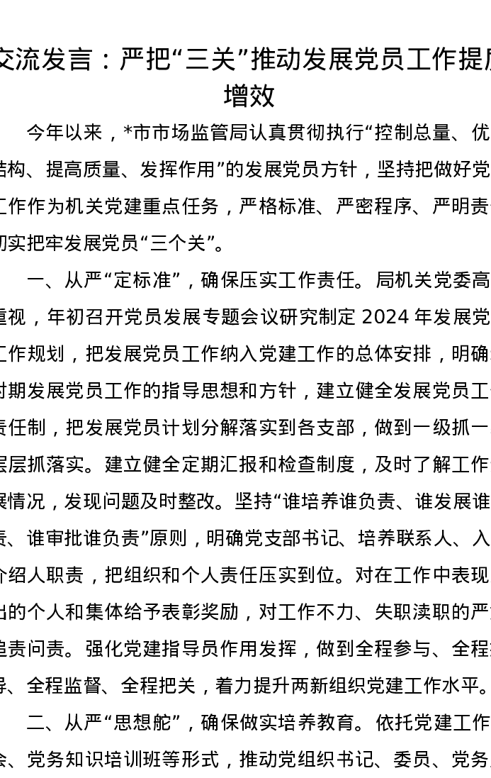 交流发言:严把“三关” 推动发展党员工作提质增效