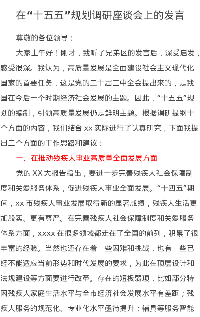 在“十五五”规划调研座谈会上的发言