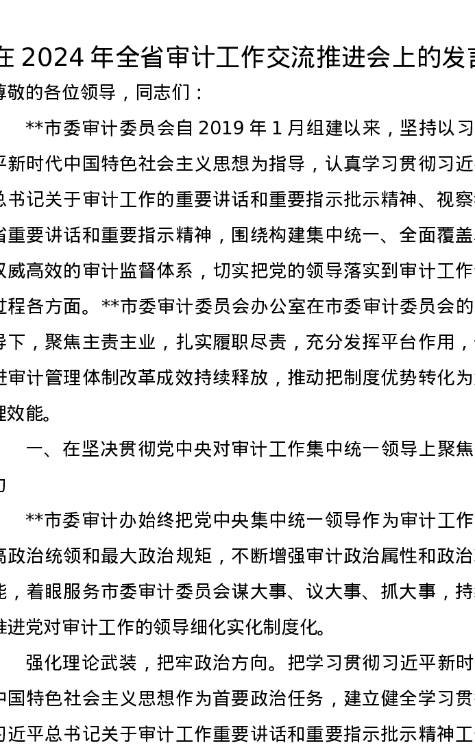 在2024年全省审计工作交流推进会上的发言