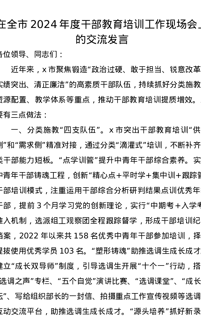在全市2024年度干部教育培训工作现场会上的交流发言