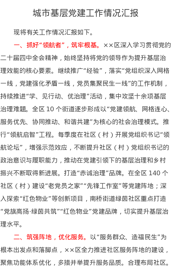 城市基层党建工作情况汇报