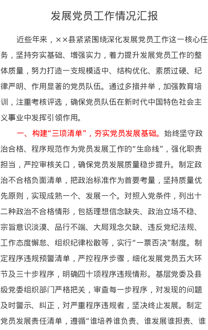 发展党员工作情况汇报