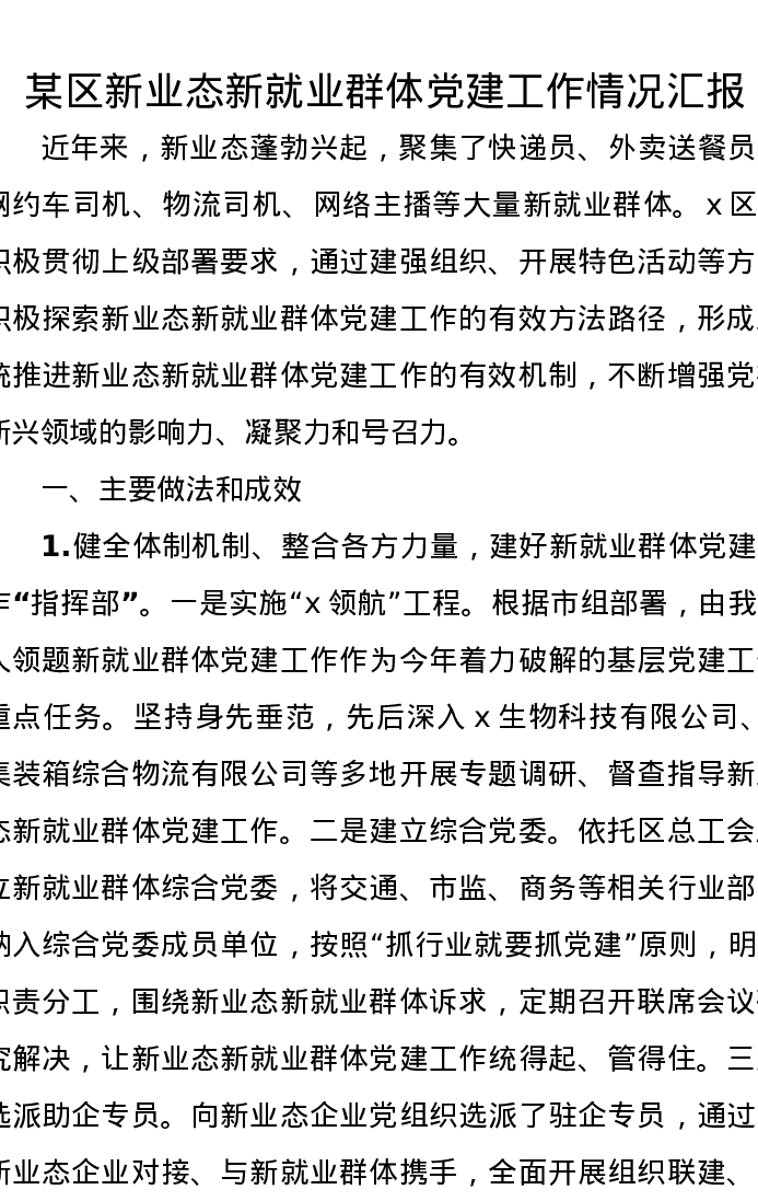 某区新业态新就业群体党建工作情况汇报