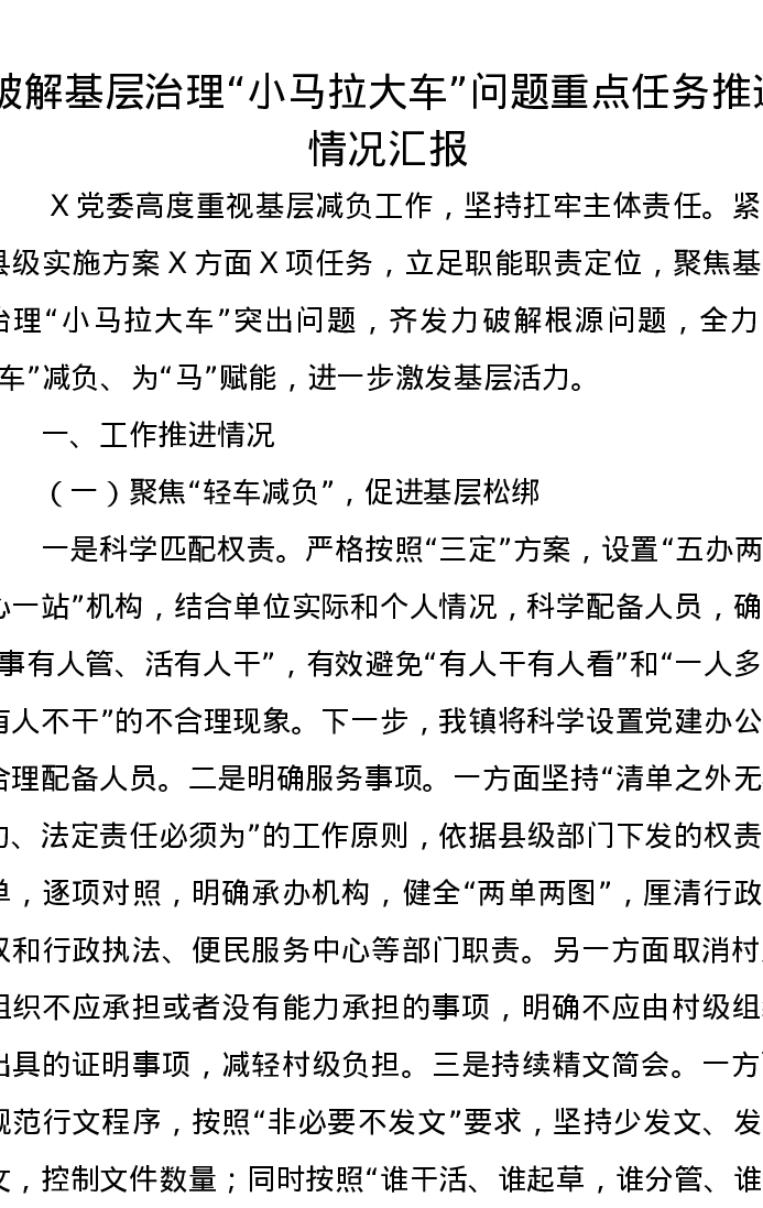 破解基层治理“小马拉大车”问题重点任务推进情况汇报