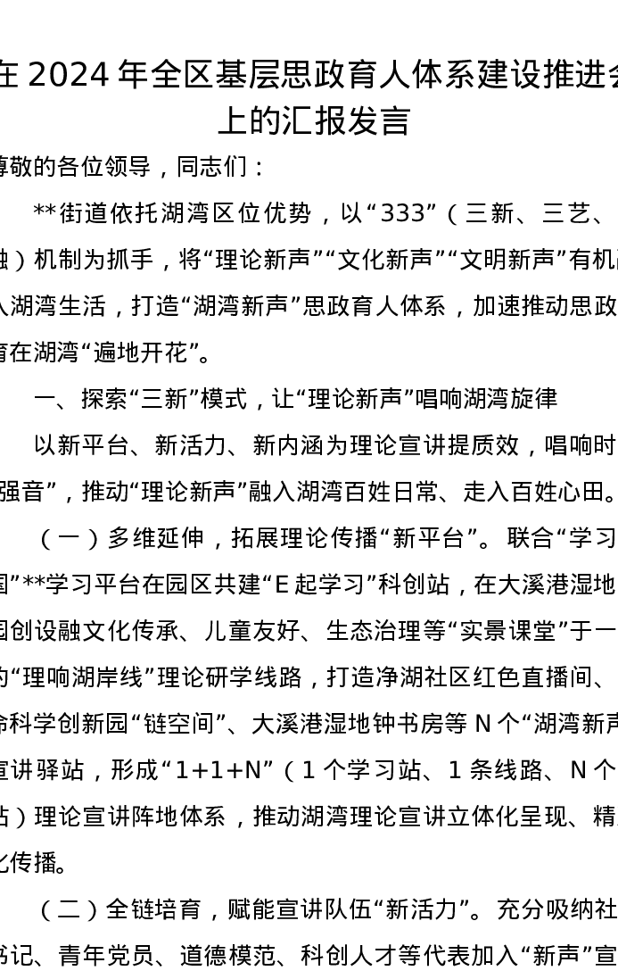 在2024年全区基层思政育人体系建设推进会上的汇报发言