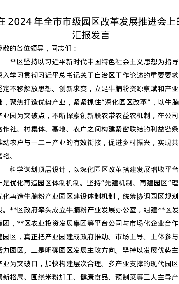 在2024年全市市级园区改革发展推进会上的汇报发言
