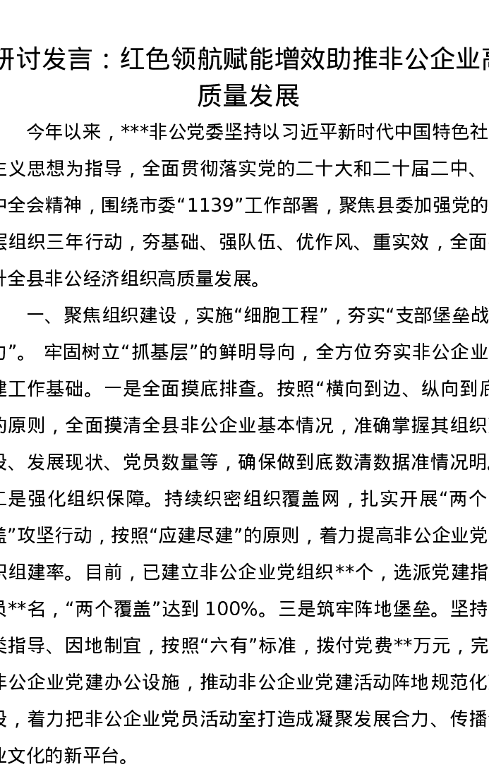 研讨发言:红色领航,赋能增效,助推非公企业高质量发展
