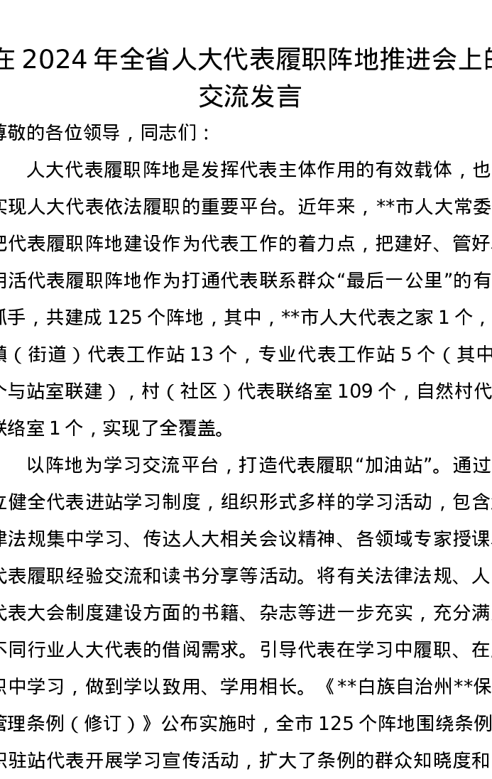 在2024年全省人大代表履职阵地推进会上的交流发言