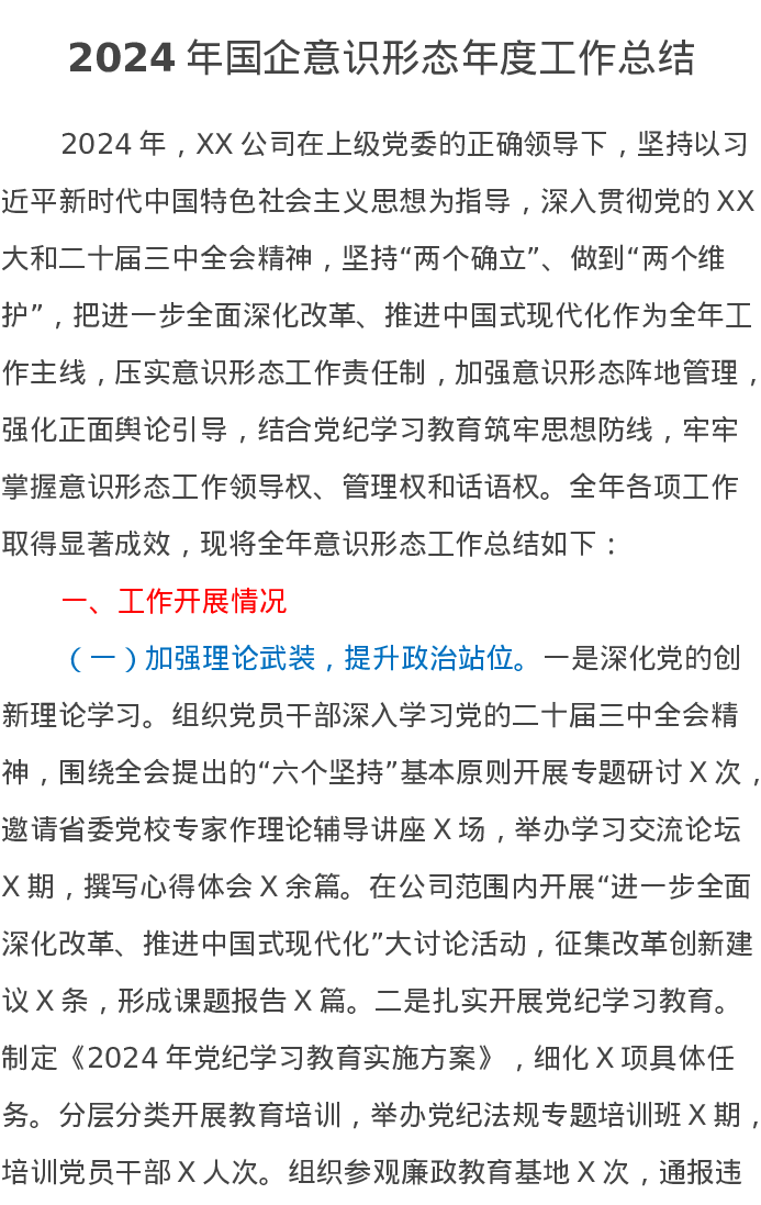 2024年国企意识形态年度工作总结
