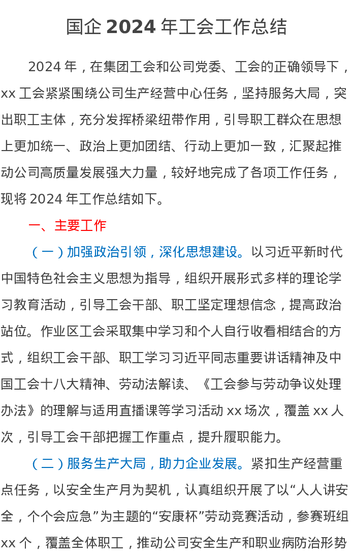 国企2024年工会工作总结