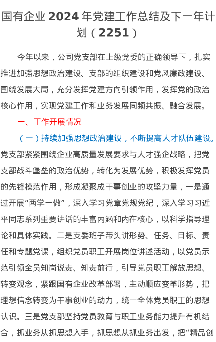 国有企业2024年党建工作总结及下一年计划(2251)
