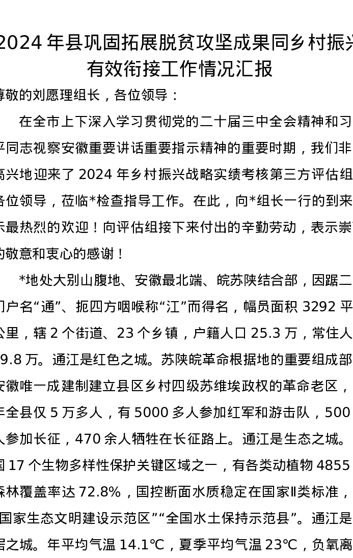 2024年县巩固拓展脱贫攻坚成果同乡村振兴有效衔接工作情况汇报