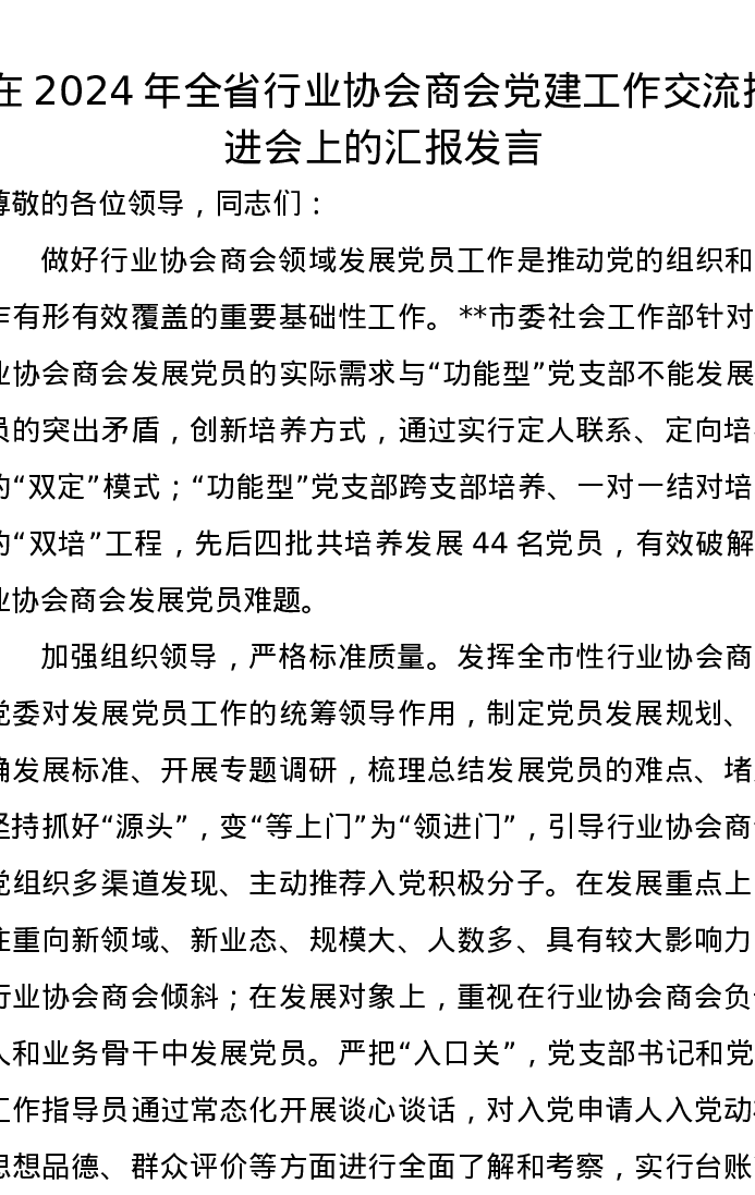 在2024年全省行业协会商会党建工作交流推进会上的汇报发言