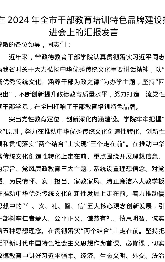 在2024年全市干部教育培训特色品牌建设推进会上的汇报发言