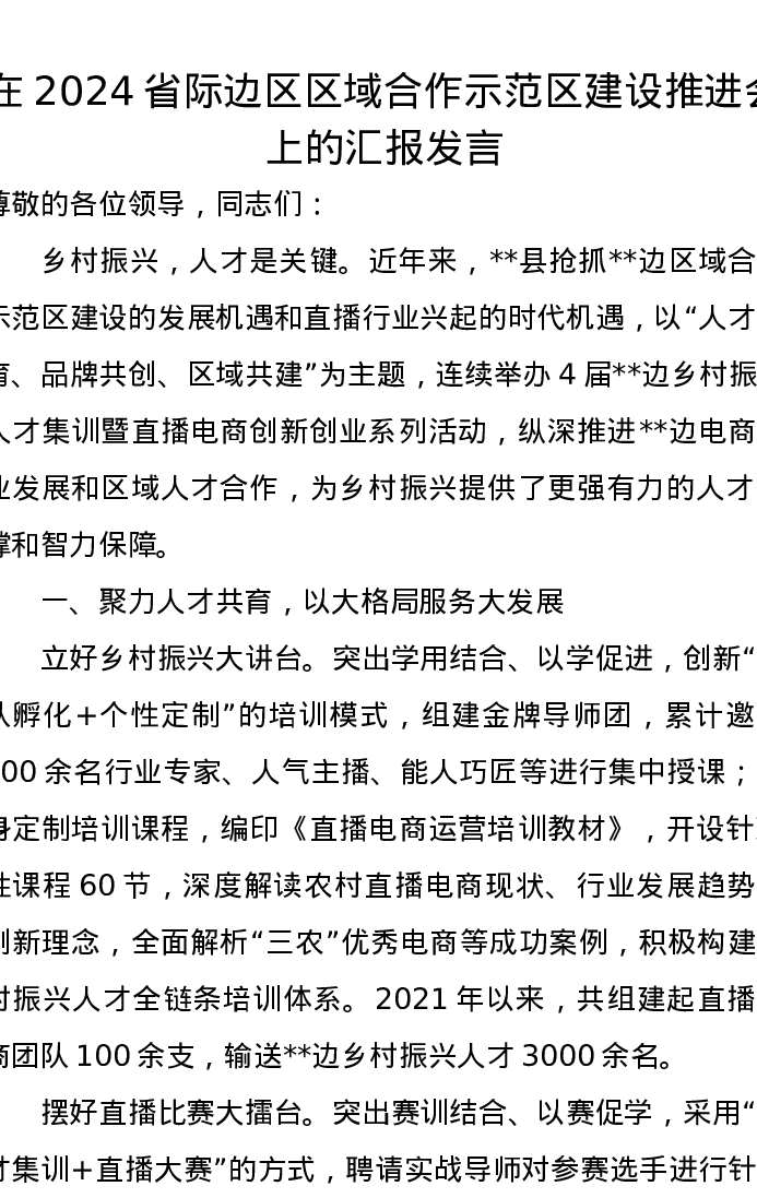 在2024省际边区区域合作示范区建设推进会上的汇报发言