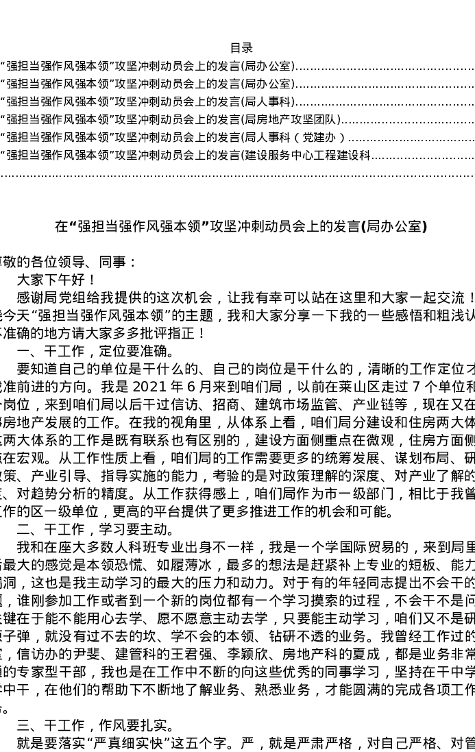 汇编:“强担当,,强作风,,强本领”攻坚冲刺动员会议发言材料6篇