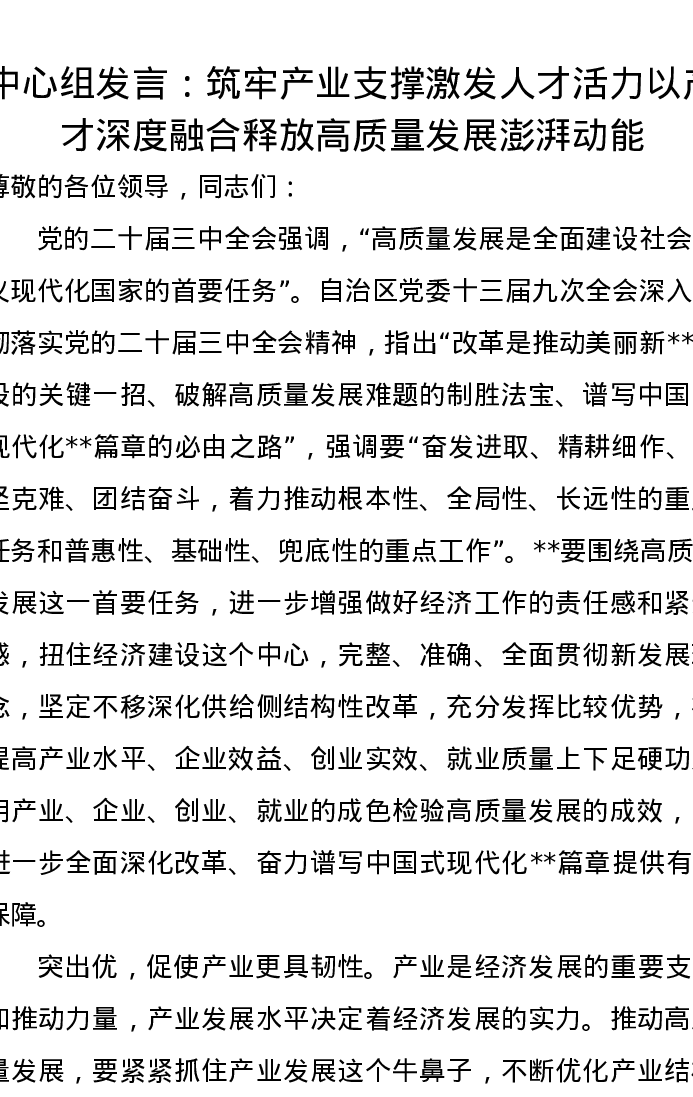中心组发言:筑牢产业支撑,激发人才活力,以产才深度融合释放高质量发展澎湃动能