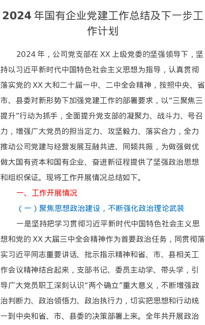 2024年国有企业党建工作总结及下一步工作计划8