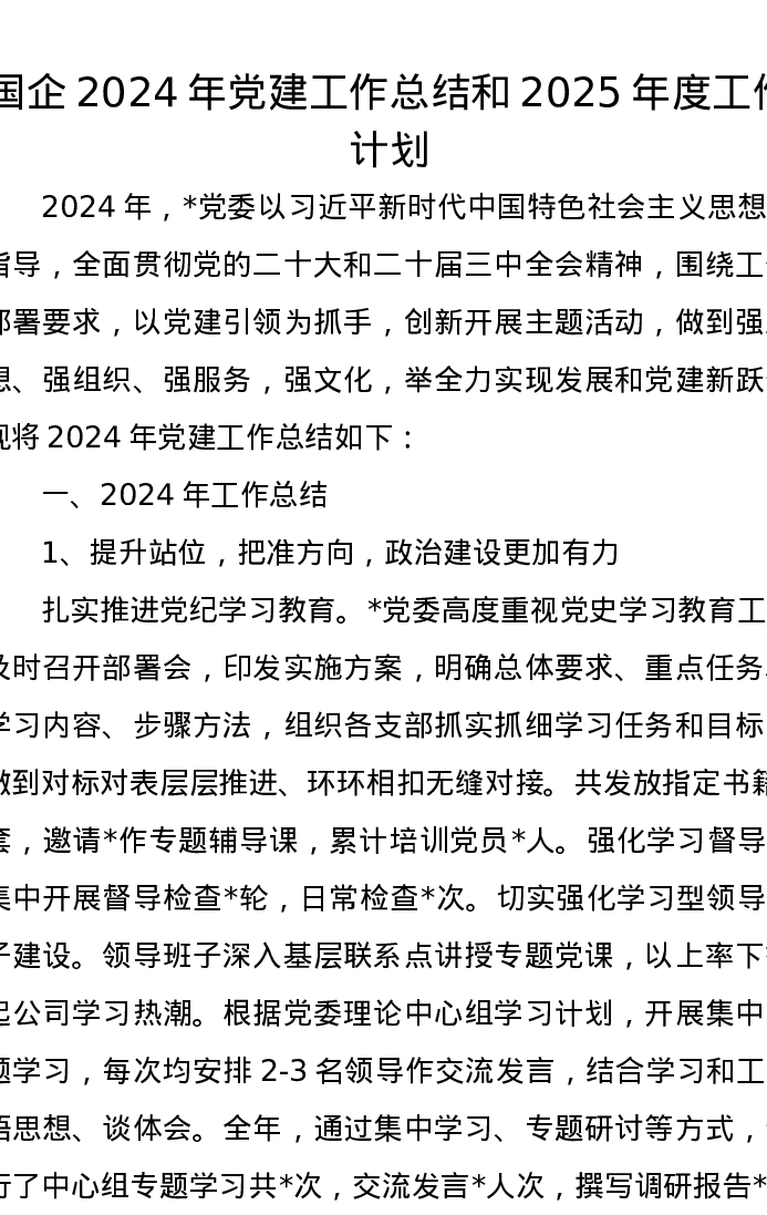 国企2024年党建工作总结和2025年度工作计划3