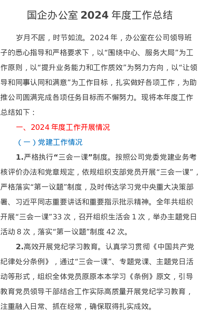 国企办公室2024年度工作总结