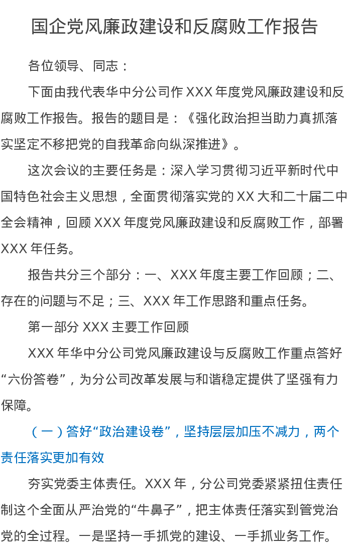 国企党风廉政建设和反腐败工作报告